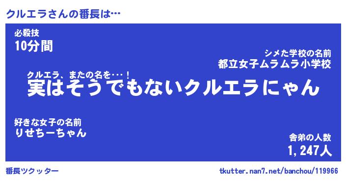 | ヒーロー風カッコイイあだ名 | 『スーパークルエラ』『銀牙騎士クル』 |