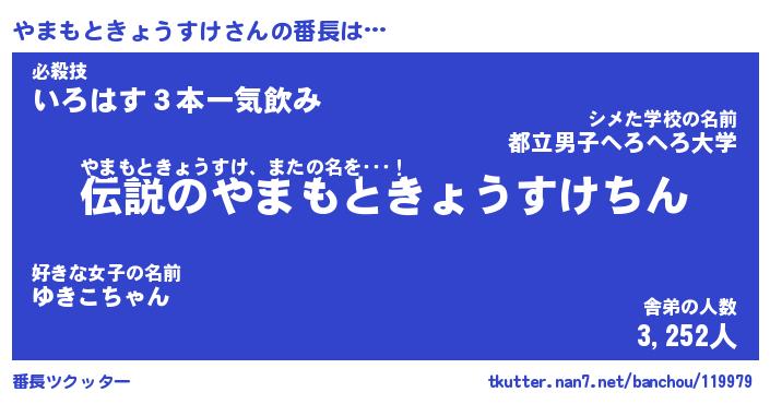| 男性向けラノベタイトル風あだ名 | 『やまもときょうすけの憂鬱』 |