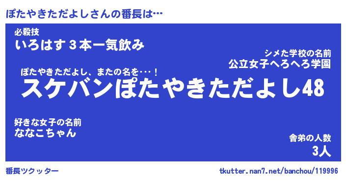 | ヘコむあだ名 | 『ぽたにゅー』『牛乳』『ぽたを』 |