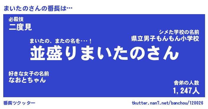 | 女子向けラノベタイトル風あだ名 | 『まいたの姫と円卓の騎士』 |