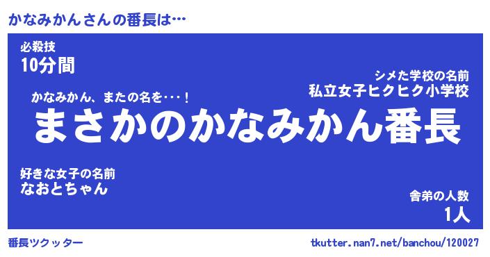 | 肩書あだ名 | 『かなみかん社長令嬢』『かなみかん班長』 |