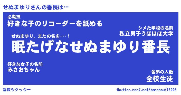 | 伝説のあだ名 | 『封印されしスナイパーせぬまゆり』 |