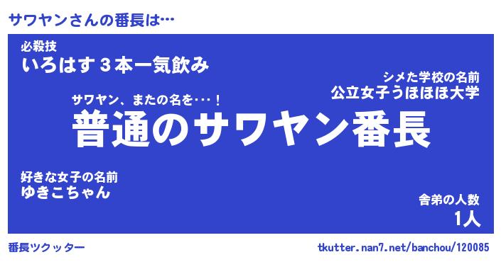 | 意味不明あだ名 | 『ペロリンサワヤン』『永久保存サワヤン』 |