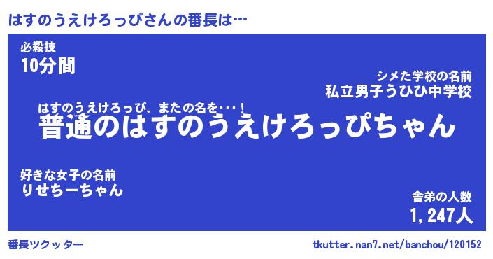 | 伝説のあだ名 | 『不死鳥のスナイパーはすのうえけろっぴ』 |