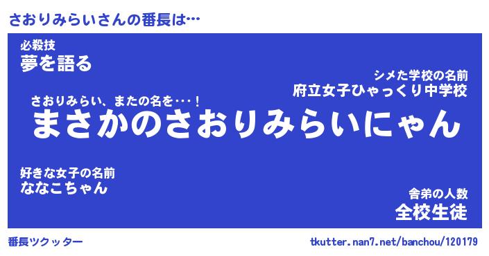 | 肩書あだ名 | 『さおりみらい店長』『さおりみらい班長』 |
