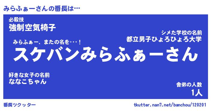 | 欧米人風あだ名 | 『マイケルみらふぁー』 |