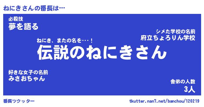| ヘコむあだ名 | 『ねににー』『豆乳』『ねにっちょ』 |
