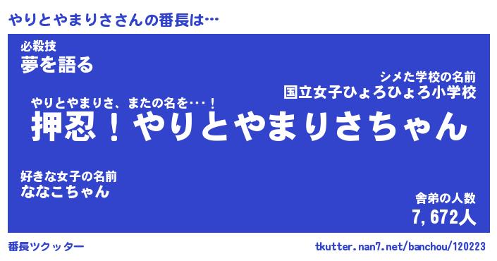 | 2回繰り返すあだ名 | 『やりやり』『ややりり』『ぬるぬる』 |