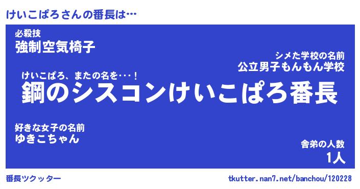 | 伝説のあだ名 | 『封印されしスナイパーけいこぱろ』 |