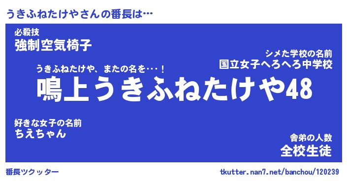 | 伝説のあだ名 | 『封印されしスナイパーうきふねたけや』 |