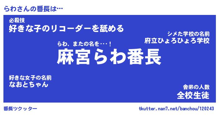 | ヘコむあだ名 | 『らわにゅー』『酢こんぶ』 |