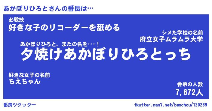 | 男性向けラノベタイトル風あだ名 | 『アカボリヒロトアートオンライン』 |