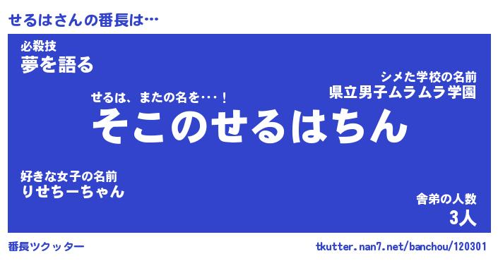 | 2回繰り返すあだ名 | 『せるせる』『せせるる』『おたおた』 |