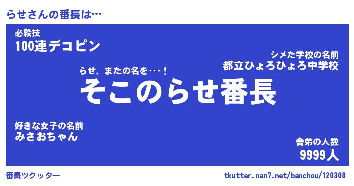 | ヒーロー風カッコイイあだ名 | 『スーパーラセ』『ウルトラらせマン』 |