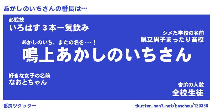 | 肩書あだ名 | 『あかしのいち社長』『あかしのいち班長』 |