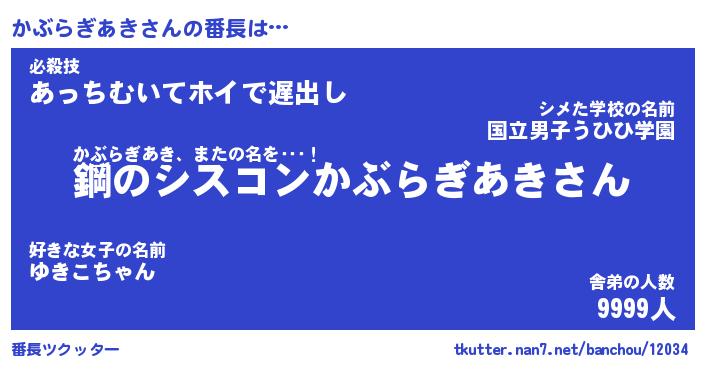 | 伝説のあだ名 | 『封印されしスナイパーかぶらぎあき』 |