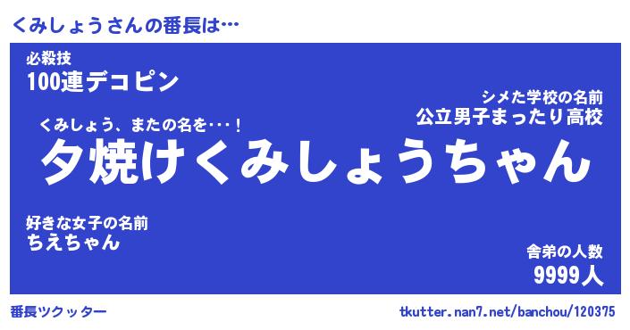 | ヒーロー風カッコイイあだ名 | 『スーパークミショウ』『天弓騎士クミ』 |