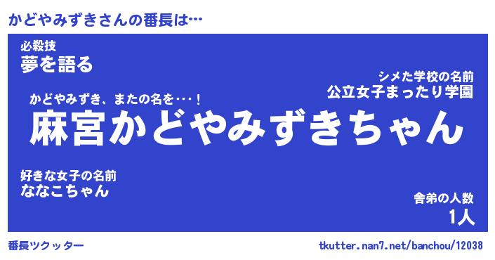 | ヘコむあだ名 | 『かどにゅー』『なまこ酢』 |