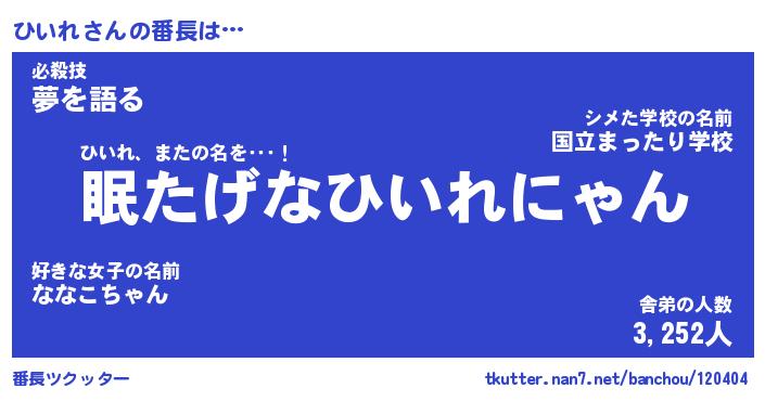 | ファンタジー風あだ名 | 『ヒイフェル』『エターナルヒイレー』 |