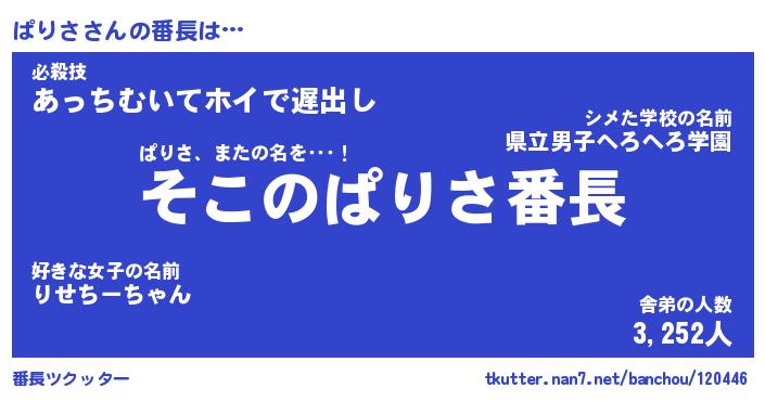 | 意味不明あだ名 | 『ペロリンぱりさ』『ぱりさフォーエバー』 |