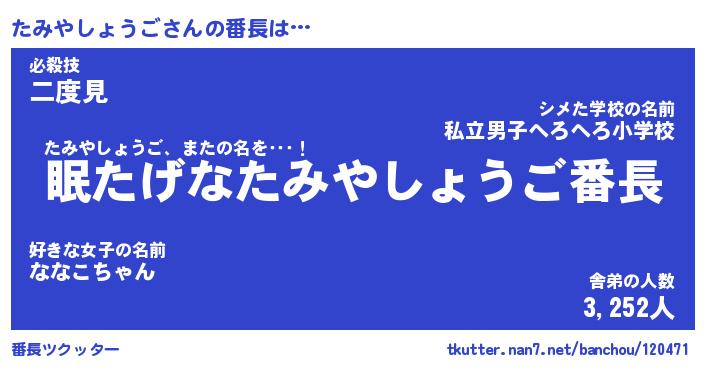 | ヒーロー風カッコイイあだ名 | 『スーパータミヤショウゴ』 |