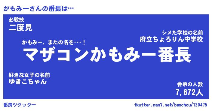 | 意味不明あだ名 | 『ペロリンかもみー』『永久保存かもみー』 |