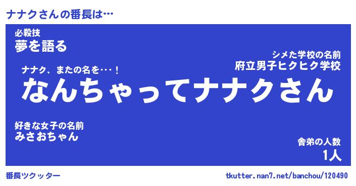 | 意味不明あだ名 | 『ペロリンナナク』『ナナクフォーエバー』 |