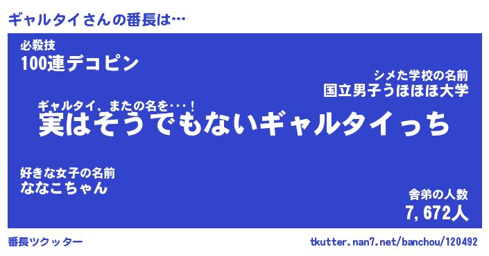 | ヒーロー風カッコイイあだ名 | 『スーパーギャルタイ』『黄金騎士ギャ』 |