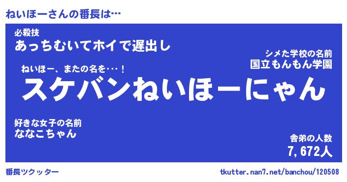 | 欧米人風あだ名 | 『マイケルねいほー』『ウサインねいほー』 |