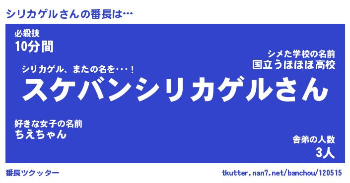 | 2回繰り返すあだ名 | 『シリシリ』『シシリリ』『おやおや』 |