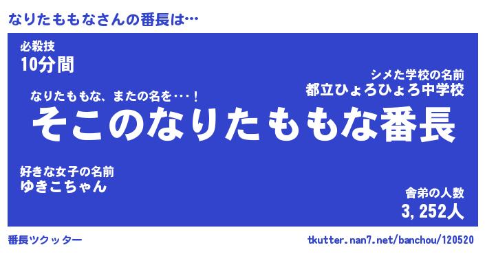 | ヒーロー風カッコイイあだ名 | 『スーパーナリタモモナ』『幻影騎士ナリ』 |