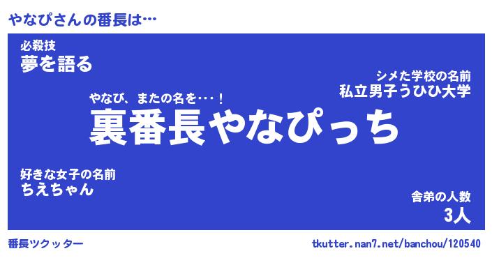 | 肩書あだ名 | 『やなぴ社長令嬢』『やなぴ総理大臣』 |