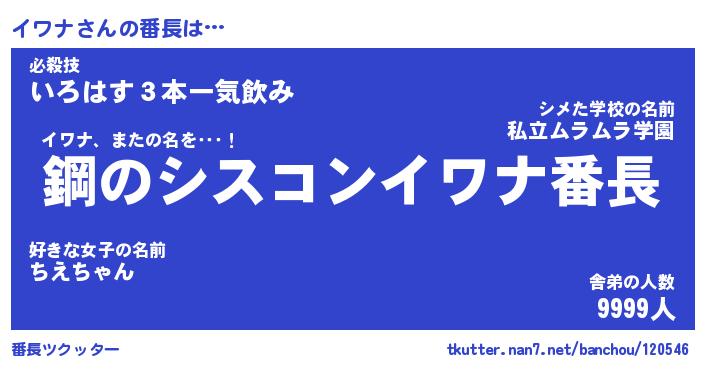 | 肩書あだ名 | 『イワナ社長』『イワナ大統領』 |