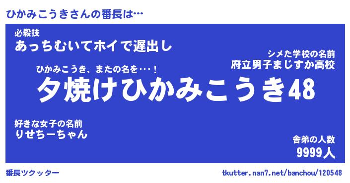 | 伝説のあだ名 | 『封印されしスナイパーひかみこうき』 |