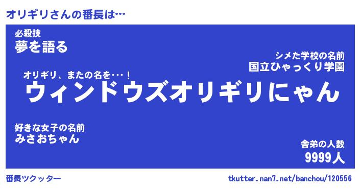| ヒーロー風カッコイイあだ名 | 『スーパーオリギリ』『天弓騎士オリ』 |
