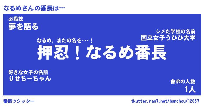 | 伝説のあだ名 | 『封印されしスナイパーなるめ』 |