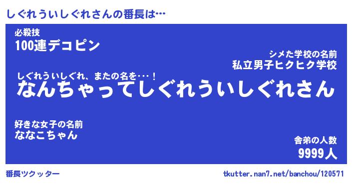 | ヘコむあだ名 | 『しぐにゅー』『つくし』『しぐを』 |