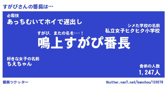 | 伝説のあだ名 | 『封印されしスナイパーすがぴ』 |