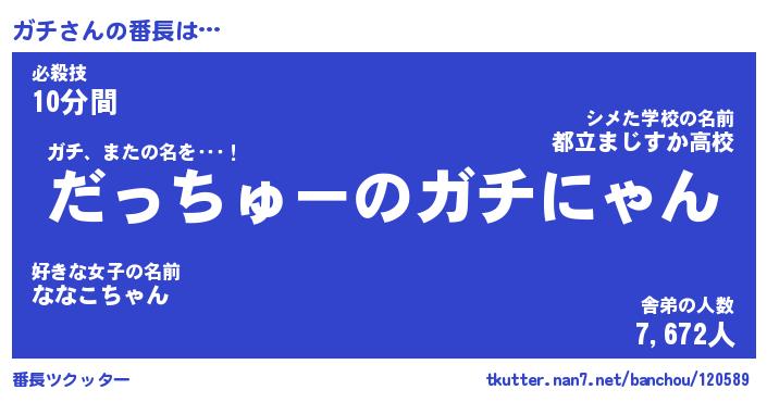 | ファンタジー風あだ名 | 『ガチフェル』『エターナルガチー』 |