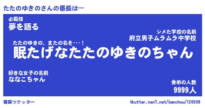 | 肩書あだ名 | 『たたのゆきの店長』『たたのゆきの班長』 |