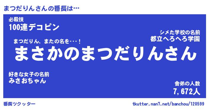 | 伝説のあだ名 | 『伝説のスナイパーまつだりん』 |