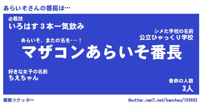 | 伝説のあだ名 | 『封印されしスナイパーあらいそ』 |