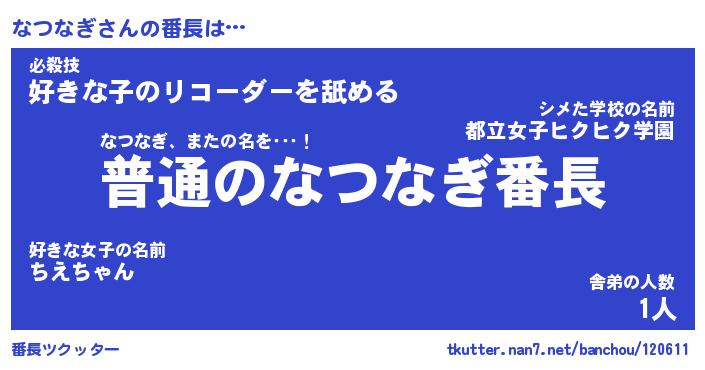 | 意味不明あだ名 | 『ペロリンなつなぎ』『永久保存なつなぎ』 |