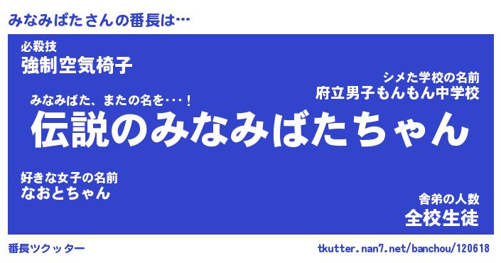 | ファンタジー風あだ名 | 『ミナフェル』『エターナルミナミバター』 |