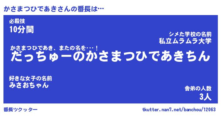 | ヒーロー風カッコイイあだ名 | 『スーパーカサマツヒデアキ』 |