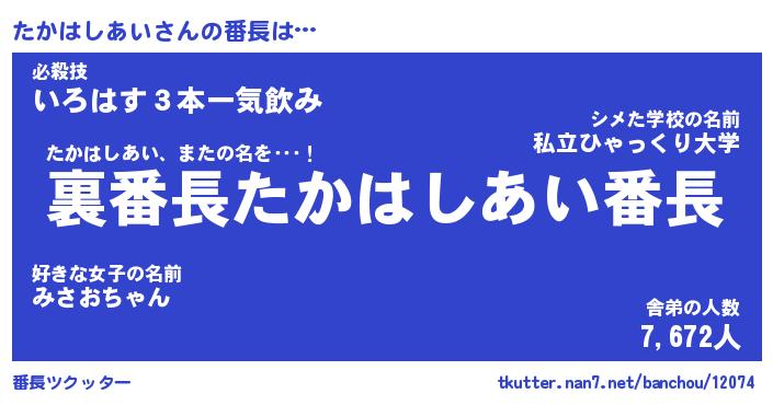 | 肩書あだ名 | 『たかはしあい店長』 |