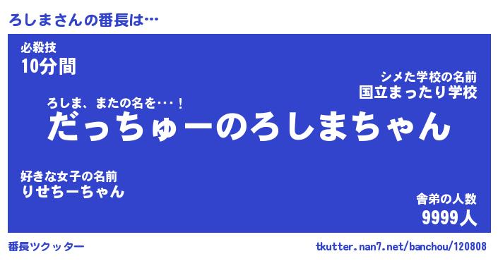 | 伝説のあだ名 | 『伝説のスナイパーろしま』 |