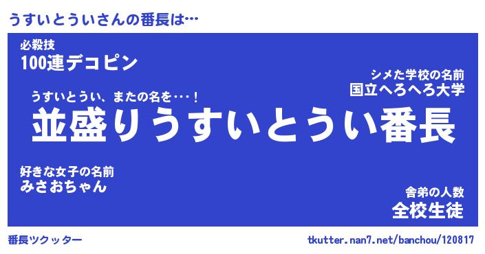 | ポケモン風あだ名 | 『ウスチュウ』『ウスイダネ』 |