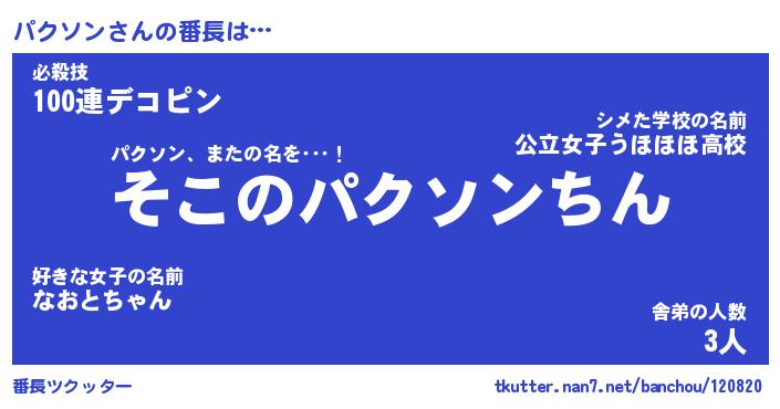 | 意味不明あだ名 | 『ペロリンパクソン』『永久保存パクソン』 |