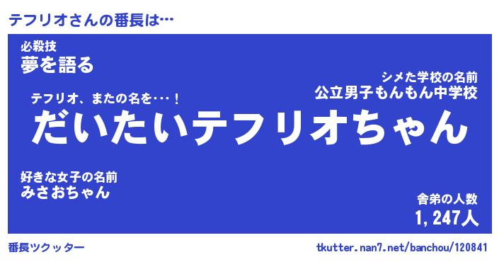 | ヒーロー風カッコイイあだ名 | 『スーパーテフリオ』『銀牙騎士テフ』 |